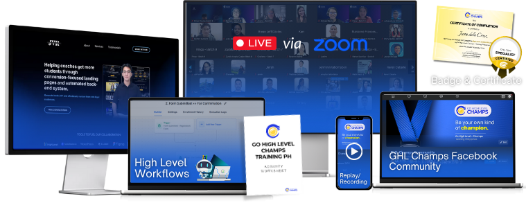 "Go High Level Champs with Coach JV Relampago. Gaganahan ka talaga pagkatapos ng trainings. SULIT NA SULIT ang investment mo."